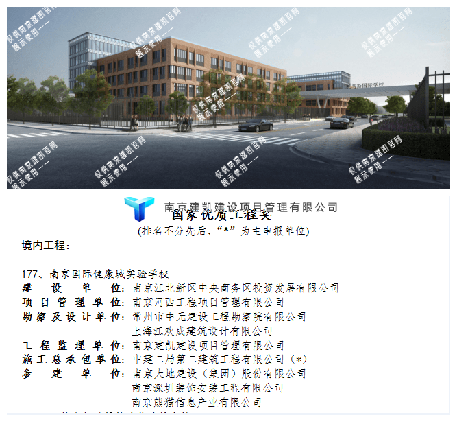熱烈祝賀我司南京國家健康城實驗學(xué)校項目監(jiān)理部榮獲“國家優(yōu)質(zhì)工程獎”