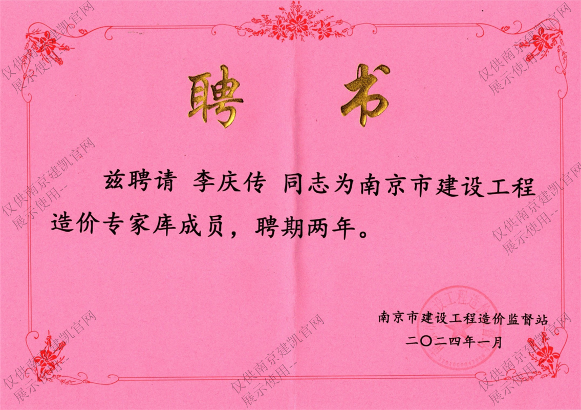 恭喜我司李慶傳同志入選“南京市建設(shè)工程造價專家?guī)斐蓡T”