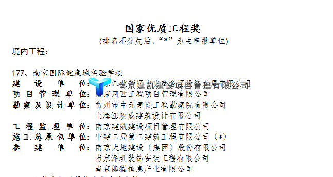 南京國家健康城實(shí)驗(yàn)學(xué)校項(xiàng)目監(jiān)理部榮獲“國家優(yōu)質(zhì)工程獎(jiǎng)”